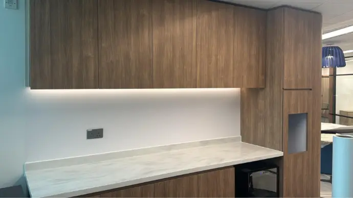 辦公室裝修不只要求美觀,更要求耐用性施工準度。美新木業擁有自家工廠直接生產的優勢,能精準控制物料品質,並由經驗豐富的港人師傅團隊進場安裝,確保工程準時完工,助力企業快速投入營運。